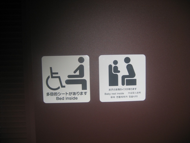 ベビーベッド、介助シートがあるどのユーザーでも利用できるトイレ